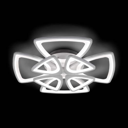 Большой 2-ярусный энергосберегающий потолочный светодиодный SMART-светильник LD105/8 белого цвета мощностью 208 Вт в стиле хай-тек. Состоит из 4 больших и 4 малых светодиодных плафонов в форме треугольника со скруглённой вершиной. Пульт из комплекта поставки позволит не только включать/выключать светильник и использовать предустановленные режимы свечения, но и поможет в ручном режиме создать желаемую атмосферу в помещении.