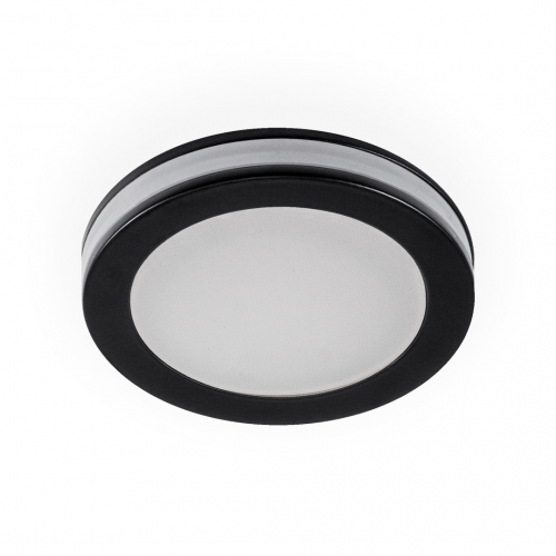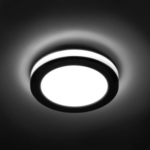 Круглая чёрная энергосберегающая светодиодная минипанель, воплощённая в оригинальном дизайне со световой полосой на торцевой стороне.
