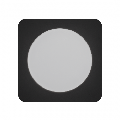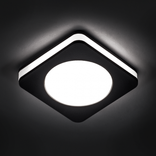 Квадратная чёрная энергосберегающая светодиодная минипанель, воплощённые в оригинальном дизайне со световой полосой на торцевой стороне.