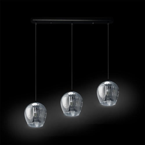Подвесной светильник с элегантным плафоном в форме "тюльпан", выполненном из лёгкого прозрачного окрашенного стекла. Исполнен в конфигурации три плафона дымчато-серого цвета, расположенных в линию на прямоугольном основании.