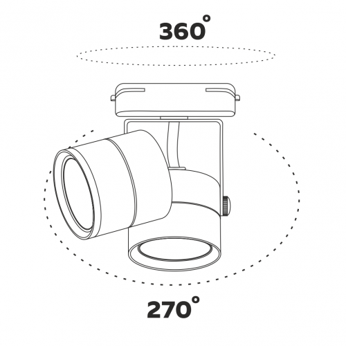 Круглый чёрный трековый светильник, стилизованный под прожектор. Оснащён эстетичной перфорированной вентиляционной решёткой на тыльной стороне для лучшего вывода тепла и длительной службы светильника.
